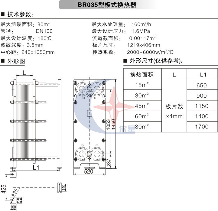 BR035型板式換熱器 是一種新型的節(jié)能熱交換裝置,具有傳熱效果高、結(jié)構(gòu)緊湊、占地面積小、 操作簡便,清洗、拆卸、維護(hù)方便,容易改變換熱面積或流程組合等優(yōu)點(diǎn)。 板片人字形波紋,介質(zhì)流動(dòng)形成湍流狀態(tài),粘膠式密封墊片。傳熱系...