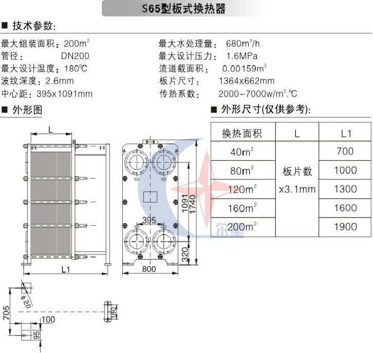 S65進口板型板式換熱器 是一種新型的節能熱交換裝置,具有傳熱效果高、結構緊湊、占地面積小、 操作簡便,清洗、拆卸、維護方便,容易改變換熱面積或流程組合等優點。 板片人字形波紋,介質流動形成湍流狀態,粘膠式密封墊片。傳熱...